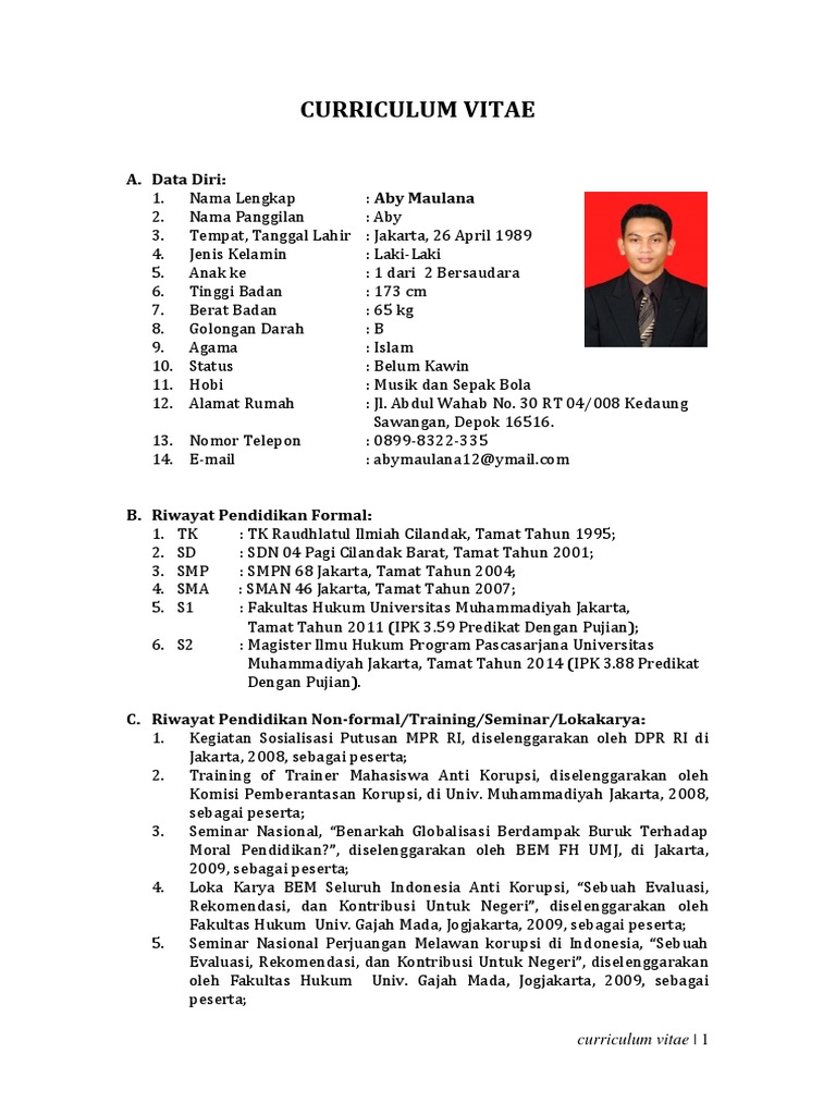 Pendidikan S1 Hukum Hukum Bisnis. 20210324 Contoh cv sarjana hukum gawe cv. Berikut contoh curriculum vitae Bahasa Inggris dari seorang fresh graduate Sarjana Hukum.