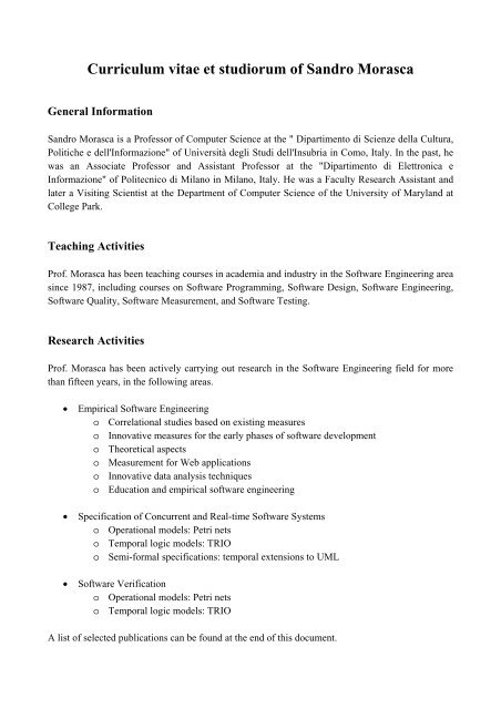 Curriculum Vitae Et Studiorum Of Sandro Morasca