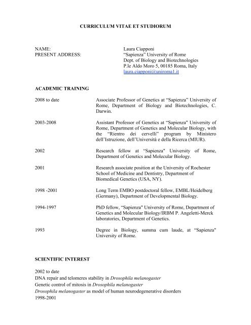 Curriculum Vitae Et Studiorum Name Laura Ciapponi